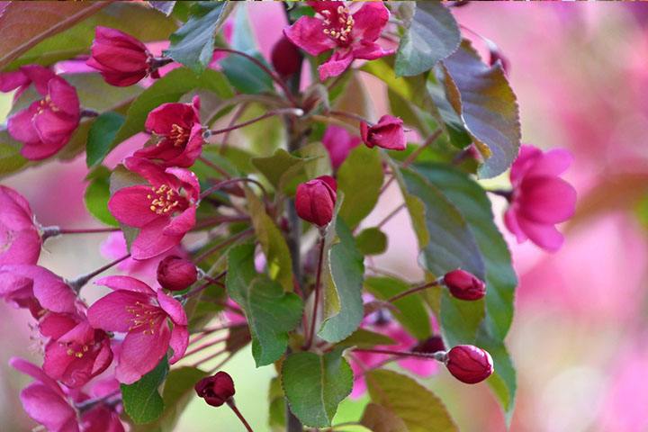 3.水分要求:北美海棠需要保持足夠的濕潤度,但不要讓水積在盆底,以免爛根。應用切合實際的方法,保證養護的水分是適度的,根據季節的不同,用水的次數有所不同。使用排水口較好的盆子,并在盆底鋪設一大層珍珠石或石渣等疏松性、透氣性較好的材料。